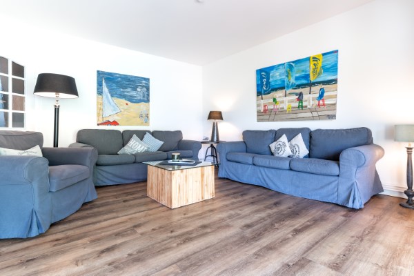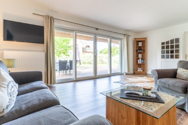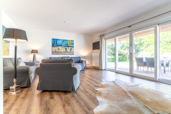 …ist unsere großzügige 100qm Wohnung im Erdgeschoß mit Südwestterrasse inklusive 800qm Garten und Dünen.