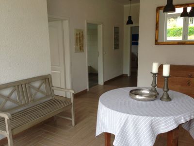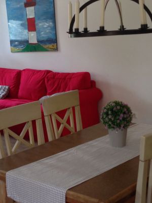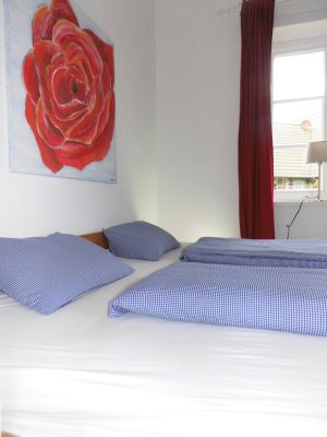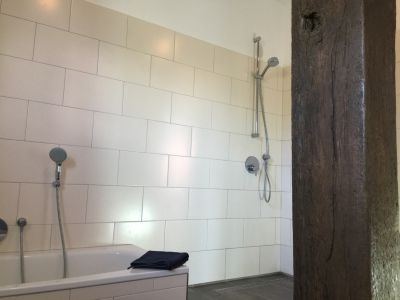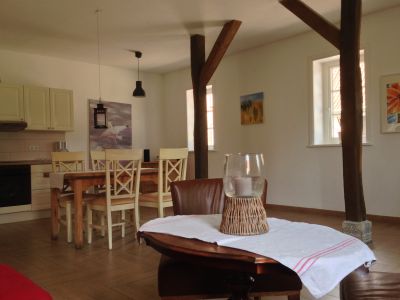Die 100qm Wohnung befindet sich im ehemaligen Kuhstall. Traditionelles wurde erhalten und mit Modernem ergänzt. Die Wohnung ist komplett in Holzdielenoptik gefliest und wird über eine Fussbodenheizung beheizt. Die Schlafzimmer sind einmal mit einem Ehebett und das zweite Mal mit zwei Einzelbetten ausgestattet. Ergänzt werden sie durch antike Bauernmöbel. Der Wohnbereich ist neben der Couch und gemütlichen Sesseln mit einer zeitgemäßen Küche inkl. Geschirrspüler, Mikrowelle, Herd mit Backofen, Kaffeemaschine, Wasserkocher, TV, DVD, Stereoanlage mit USB Anschluß ausgestattet. Eine Terrasse lädt zum Verweilen im Garten ein. Fahrräder können im Schuppen verschlossen untergestellt werden. Parkmöglichkeiten sind auf dem Grundstück vorhanden. Die große Wohnküche ist komplett ausgestattet, um selbst zu kochen. Im Ort befindet sich ein Bäcker nur 5 Gehminuten entfernt mit einer Grundauswahl an Lebensmitteln. Im Nachbarort ca. 2 km sind zahlreiche Lebensmittelgeschäfte und Einkaufsmöglichkeiten vorhanden.