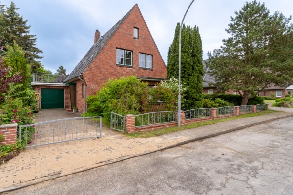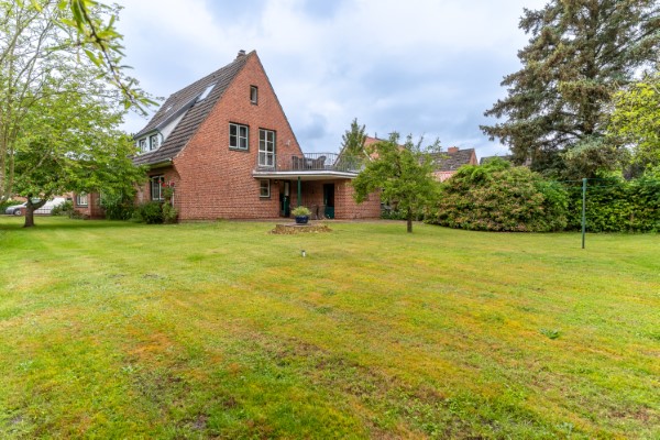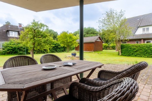 Von der Küche gelangt man auf die teils überdachte 55m² große Terrasse und in den schönen eingewachsenen Garten des 750m² großen Grundstückes.
