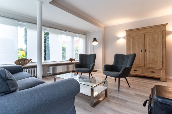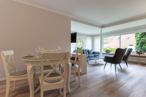 Der beschauliche Ortskern mit seinen guten Einkaufsmöglichkeiten und den zahlreichen Restaurants mit landestypisch friesischer und norddeutscher Küche ist in wenigen Gehminuten erreichbar.