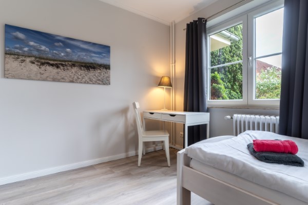 Kinderspielplätze, ein Waschcenter und der Bahnhof sind in der Nähe, ein kleines Wäldchen lädt zum spazieren und joggen ein. In 20 Gehminuten hat man den Südstrand bequem erreicht.