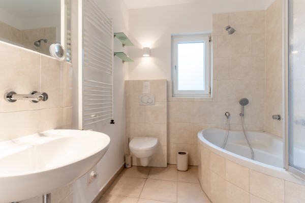 ...ist unsere familiengerechte, ebenerdige 96m² große 3 Zimmerwohnung mit einem großen kombiniertem Wohn-/Esszimmer, 2 separaten Schlafzimmern sowie einem Badezimmer mit großer Eckbadewanne.