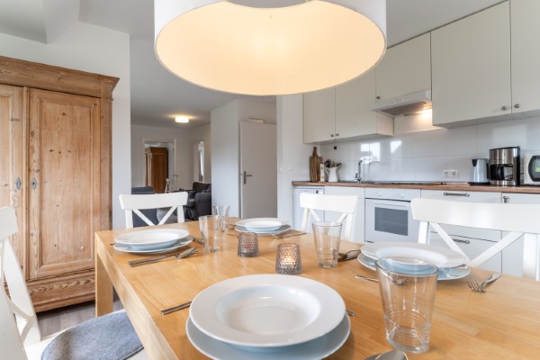 Die 3 separaten Schlafzimmer sind mit 2 Doppelbetten und 2 Einzelbetten ausgestattet. Zwei Duschbäder, eine Küche mit großem Essbereich sowie einem geräumigen Wohnzimmer bieten ausreichend Platz für die ganze Familie.